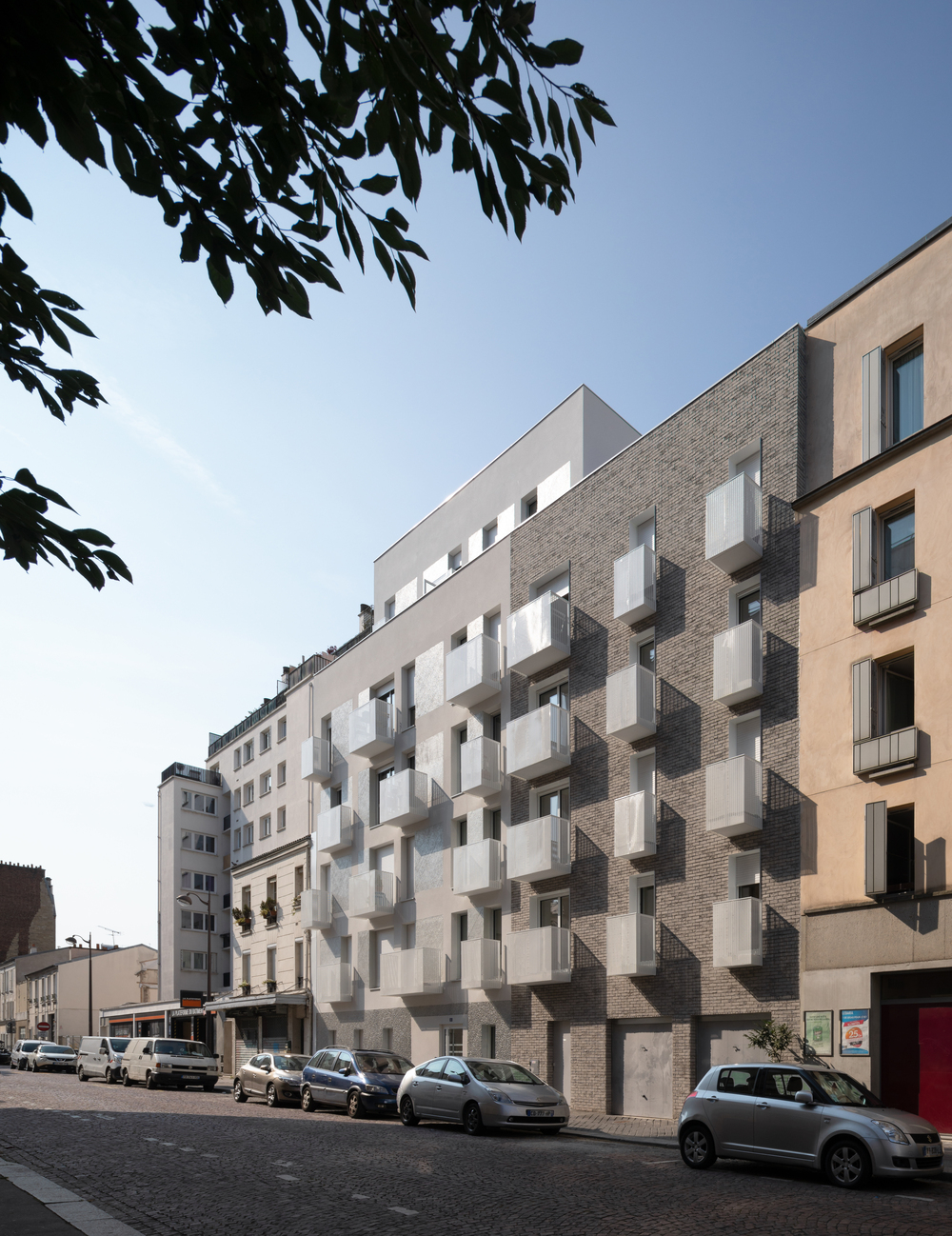 Livraison : 2021Equipe de maitrise d'oeuvreArchitecte mandataire : rh+ architectureLe projet prend la place de 3 anciennes constructions démolies qui ont fait l'objet d'une réunion de parcelles. Il nous a semblé essentiel de préserver une décomposition dans l’architecture des façades afin de conserver le rythme et les séquences de la rue Chauvelot. Un découpage permet de marquer deux batiments, constitués classiquement d’un corps principal implanté à l’alignement, avec des retraits à partir de R+5, pour une bonne intégration dans cette rue typiquement parisienne.