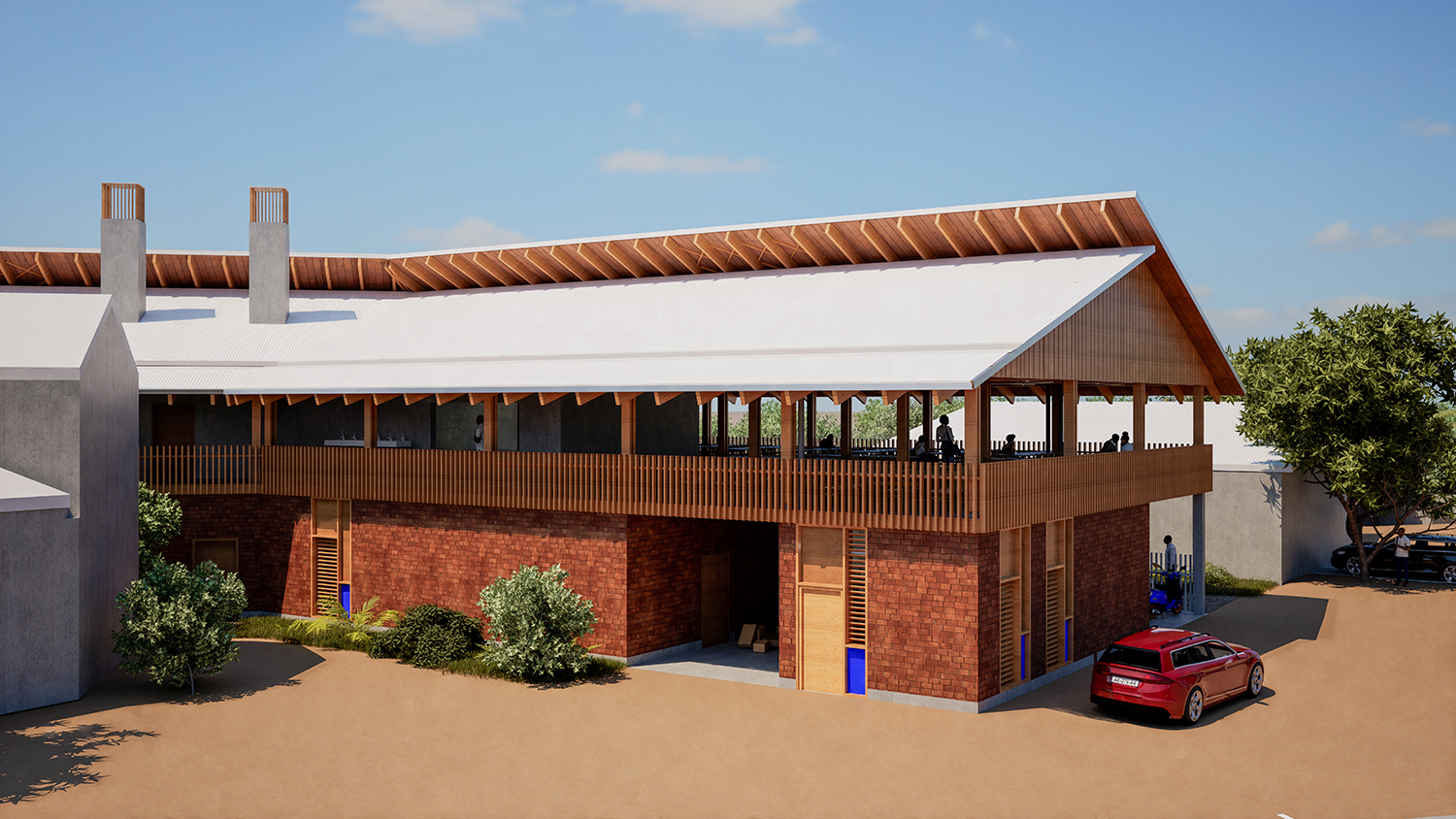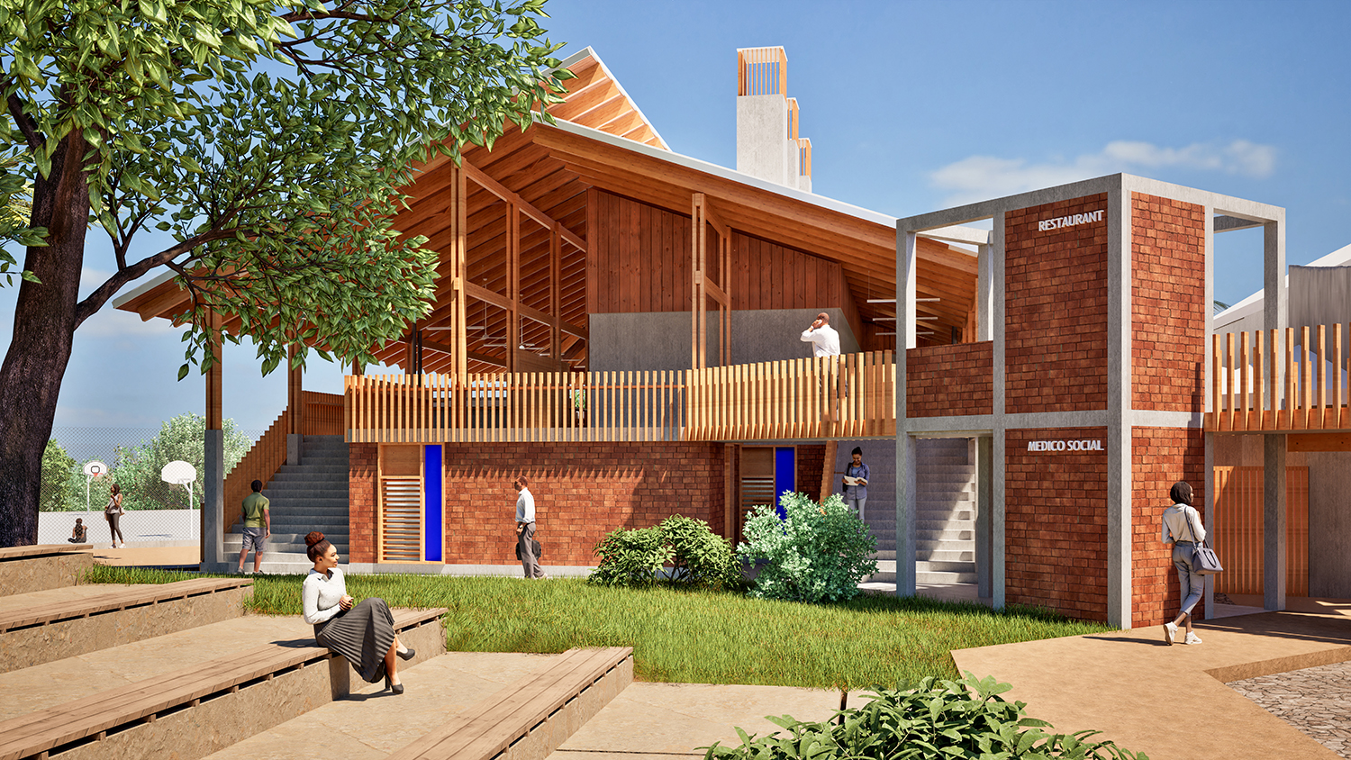 _Utiliser au maximum les ressources locales : utilisation de la BTC (Brique de Terre Compressée) produite localement afin de favoriser la pérennité de cette filière qui est déjà bien structurée, notamment grâce au développement de son utilisation dans les marchés publics de l'île. Mais aussi l'utilisation des sous-produits du bananier pour la réalisation du bardeau en toiture situé au-dessus du bac acier ou encore l'usage des bambous pour la protectionsolaire dans le but de promouvoir et de préserver le savoir-faire local qui sera développé lors de la construction du lycée polyvalent de Chirongui.