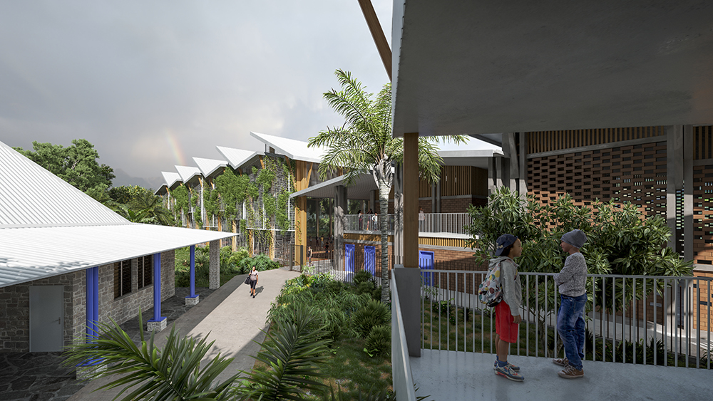 L’emploi de matériaux issus de l’artisanat local, la réinterprétation et le renforcement de l’écriture architecturale existante dans son rapport au site affichent la volonté d’inscrire le projet dans la continuité et le respect de son environnement ; la volonté d’insuffler une dynamique de modernisation intégrant la tradition et l’histoire mahoraise.